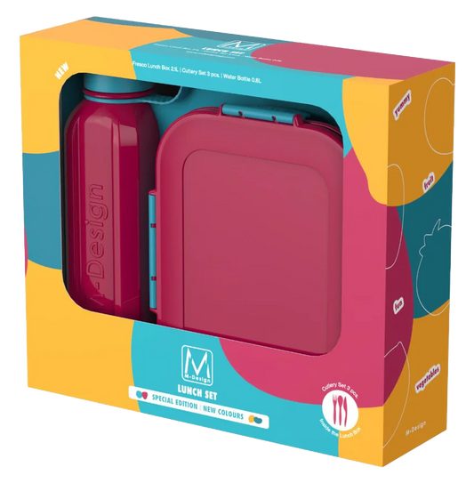 العلامة التجارية: ام ديزايناللون: فوشيا / تركوازالمكونات :1 لانش بوكس 1 زجاجة بلاستيك1 شوكةبلاستيك1 ملعقة ...