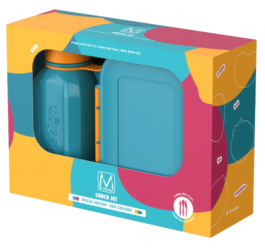العلامة التجارية: ام ديزايناللون: تركواز / برتقالالمكونات :1 لانش بوكس 1 زجاجة بلاستيك1 شوكةبلاستيك1 ملعقة ...