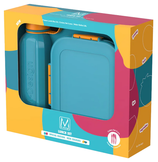 العلامة التجارية: ام ديزايناللون: تركواز / برتقاليالمكونات :1 لانش بوكس 1 زجاجة بلاستيك1 شوكةبلاستيك1 ملعقة ...