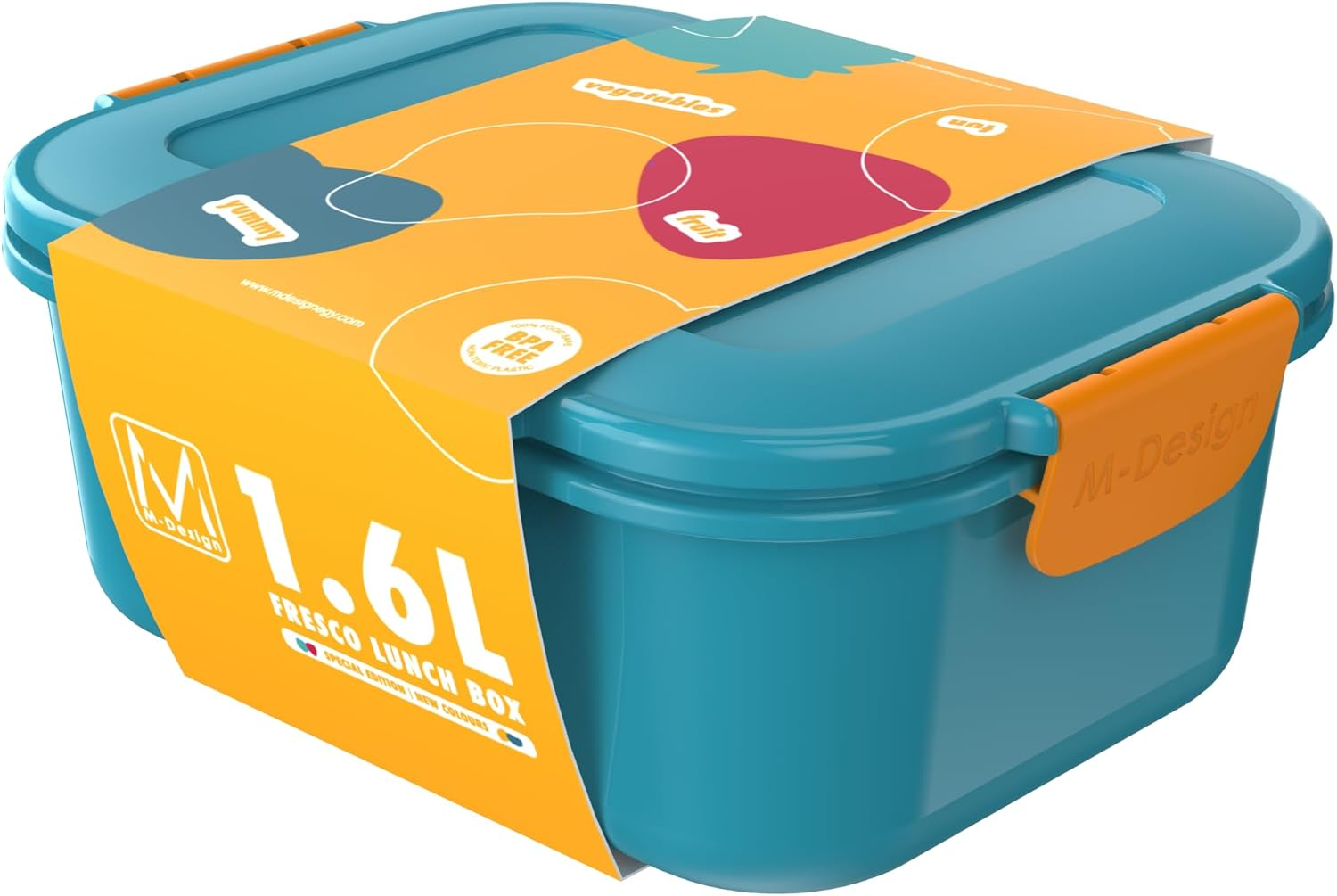ام ديزاين لانش بوكس مستطيلة مع طبق مقسم و كلبسات 1.6 لتر