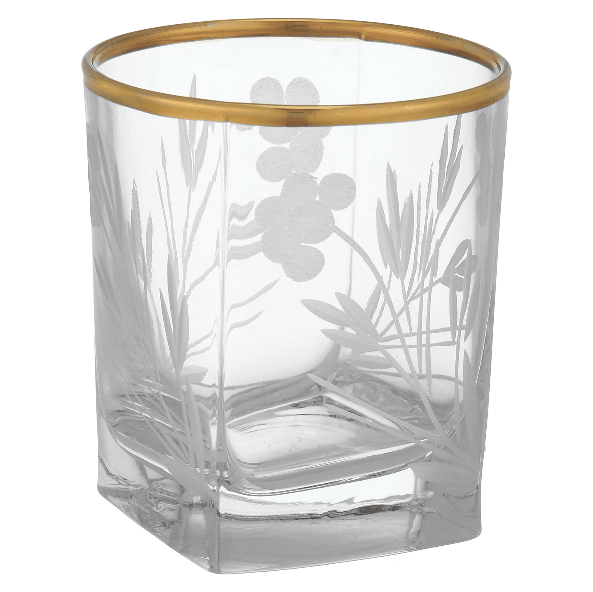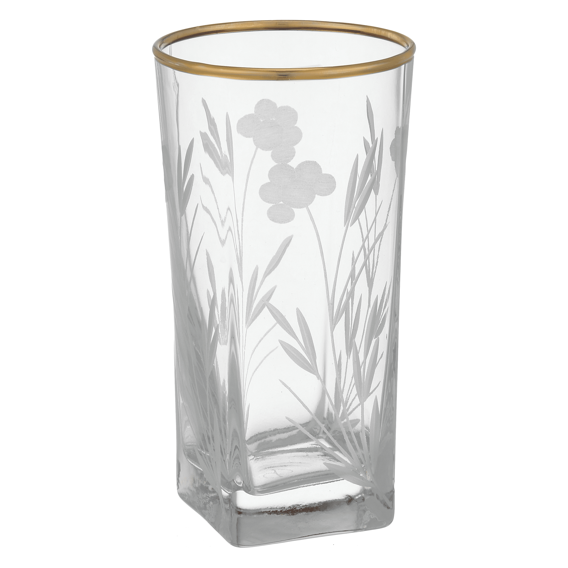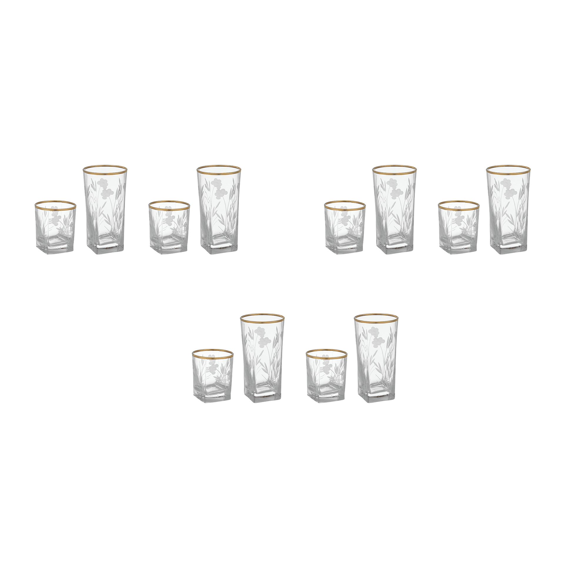 باشاباتشي طقم كوب زجاج مربع مزخرف مع كنار ذهبي 12 قطعة 305مل - 205مل