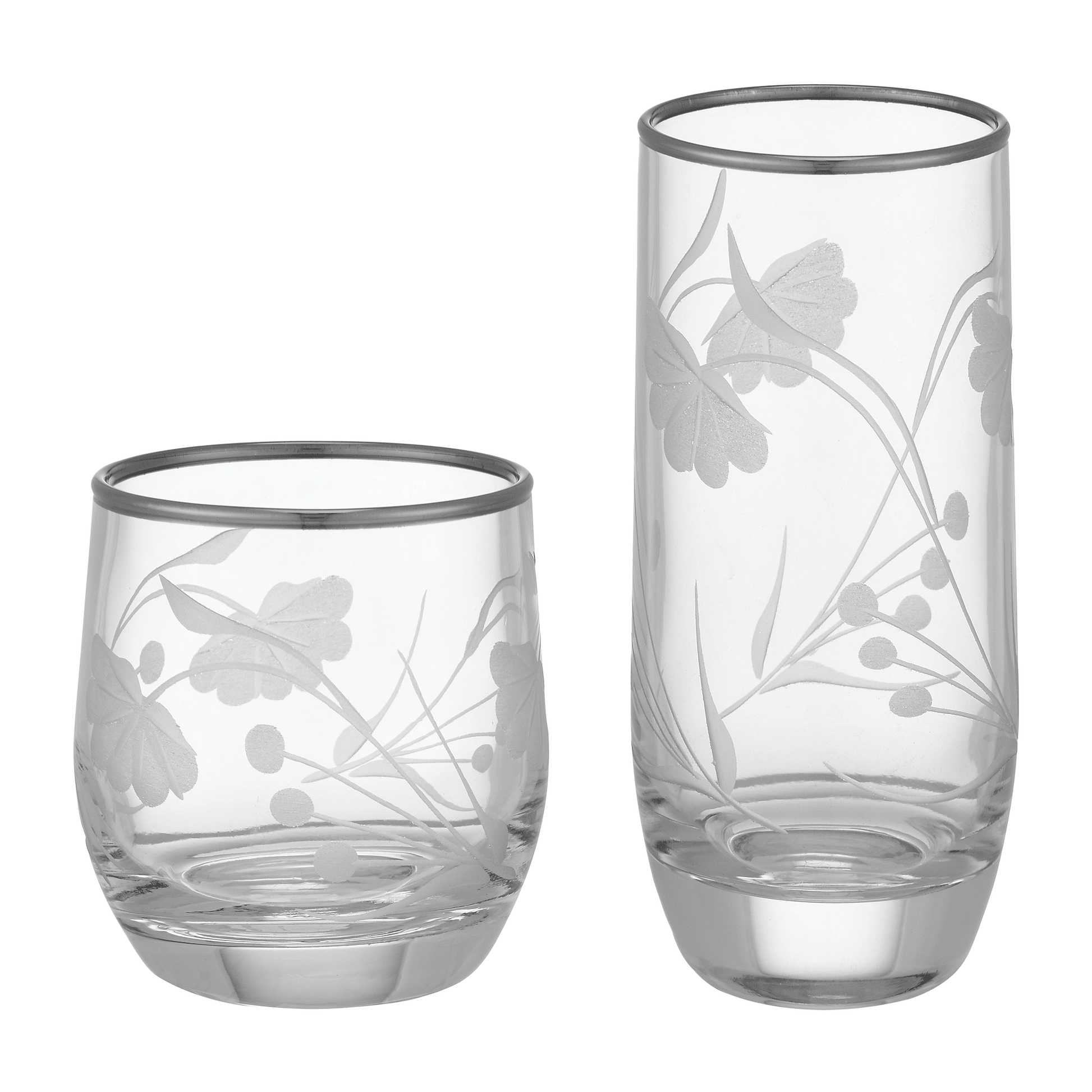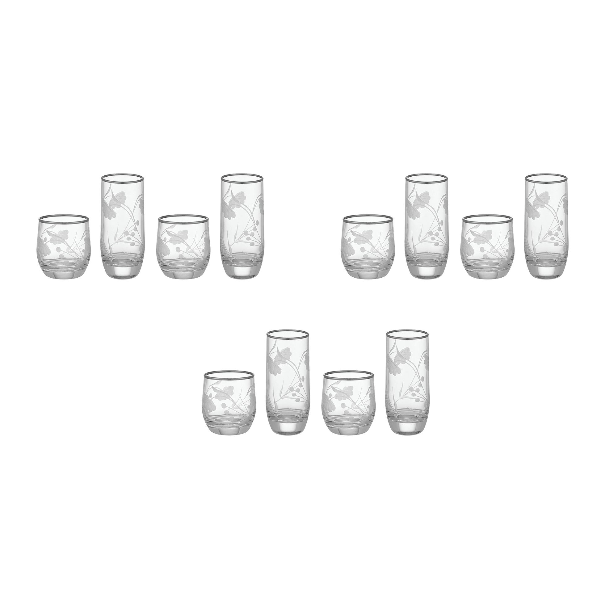 باشاباتشي طقم كوب زجاج مزخرف مع كنار فضي12 قطعة 305مل - 250مل