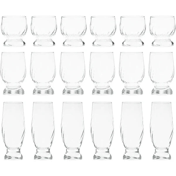 باشابتشي - أكواب مائيه 18 قطعه - 370مل -225 مل - 220مل - شفاف