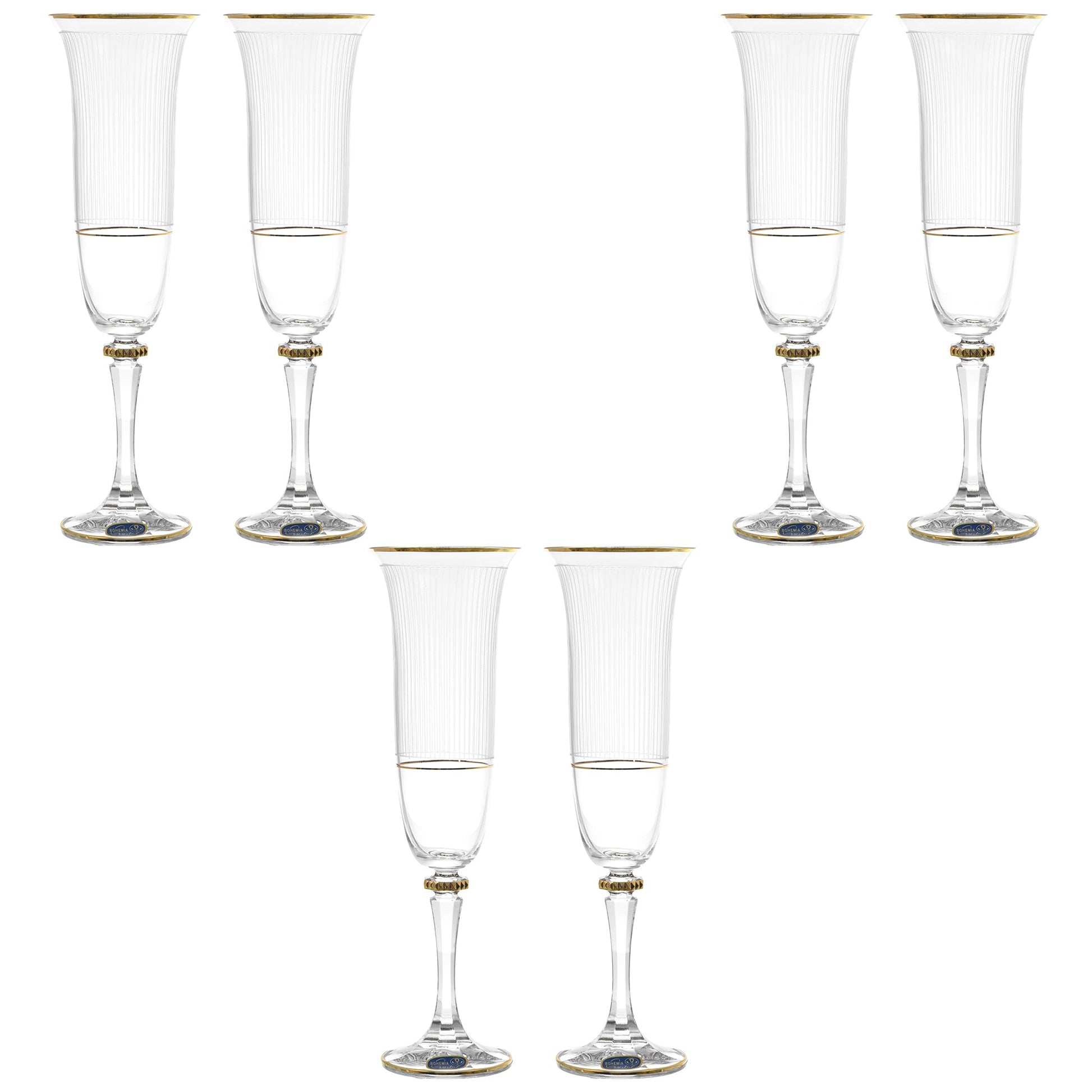 بوهيميا كريستال - طقم كاس فلوت 6 قطع - ذهبي - 150 مل - كريستال