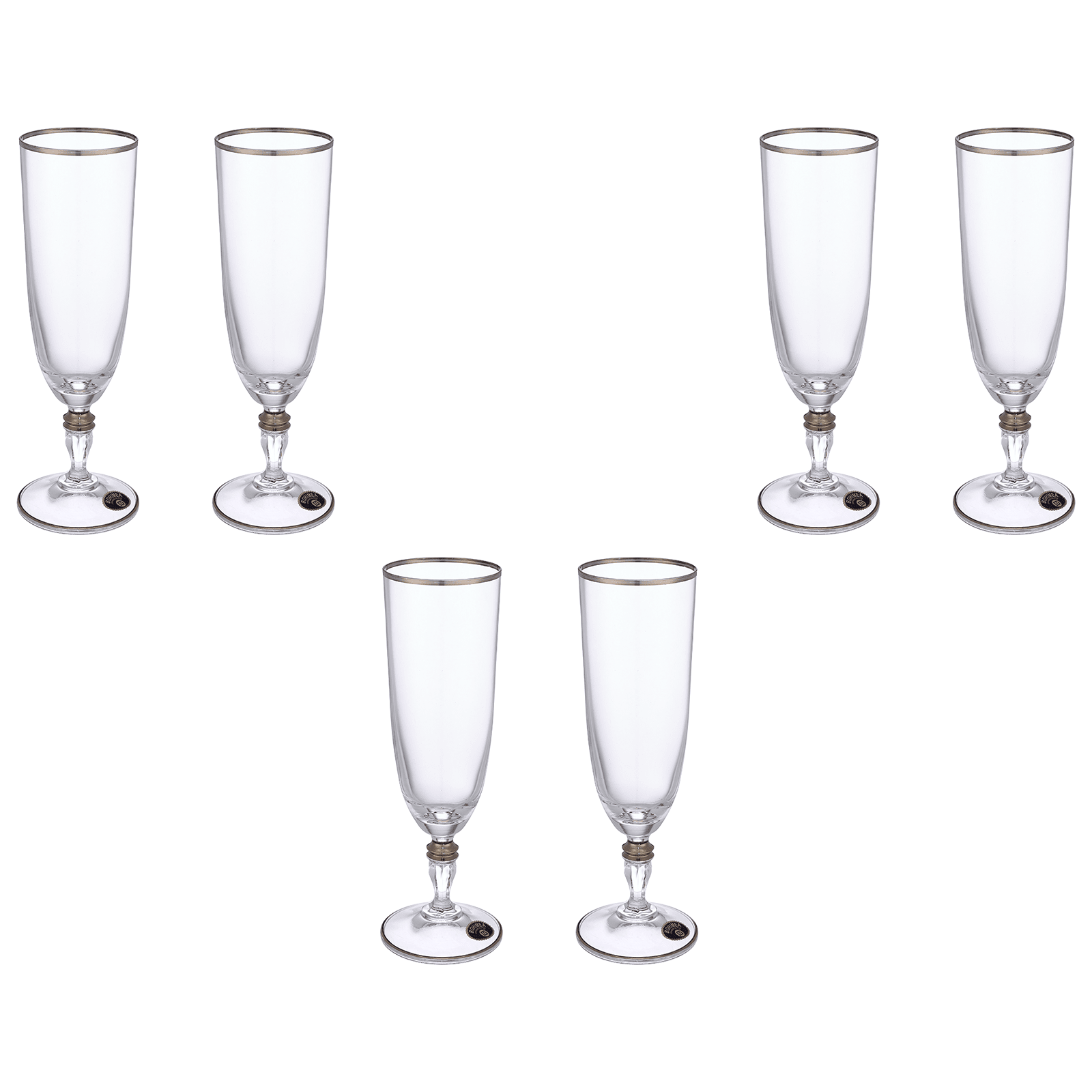 بوهيميا كريستال - طقم كاس عصير فلوت 6 قطع 220 مل - فضي - كريستال