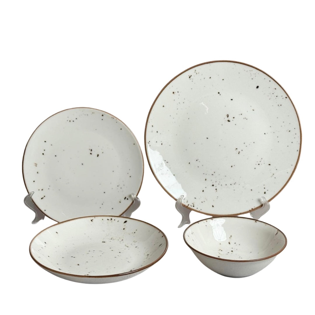 تولو طقم عشاء 24 قطعة أبيض منقط مع كنار بني