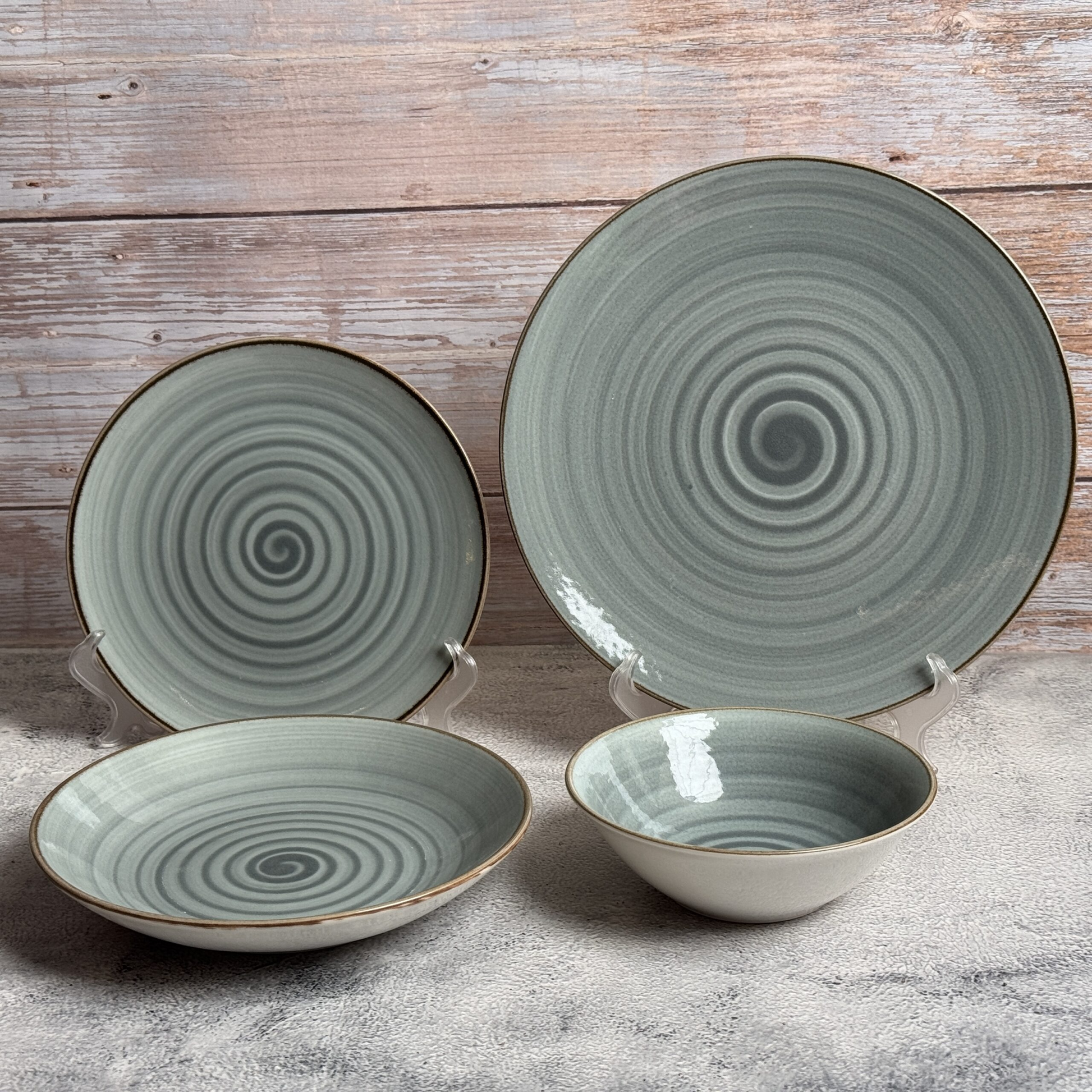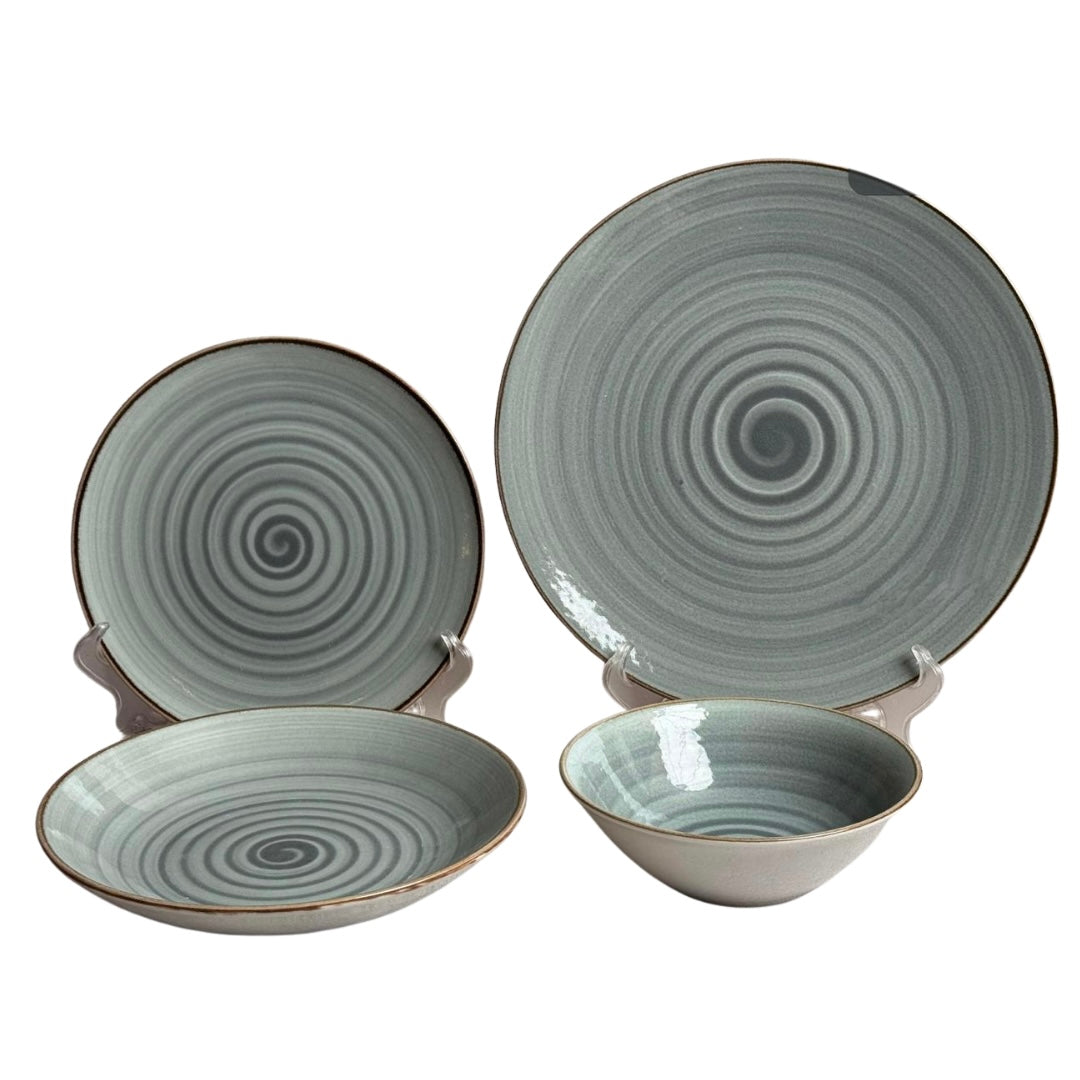 تولو طقم عشاء 24 قطعة أخضر مع كنار بني