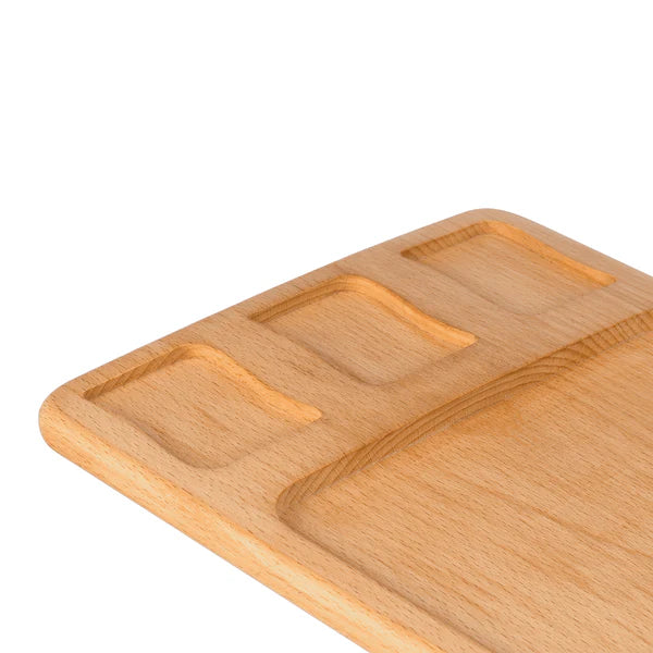 سينزو - طبق خشبي للرقائق والصلصات مع 3 أوعية - خشب و بورسلين