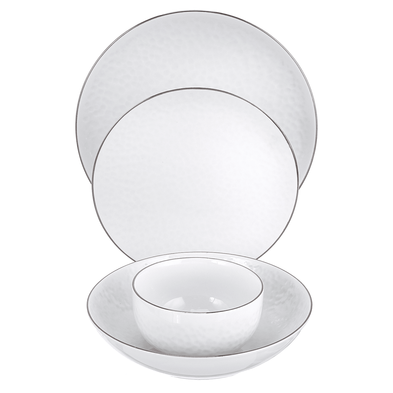 سينزو - طقم عشاء مدقوق للاستخدام اليومي، 24 قطعة، مع كنار فضي، بورسلين