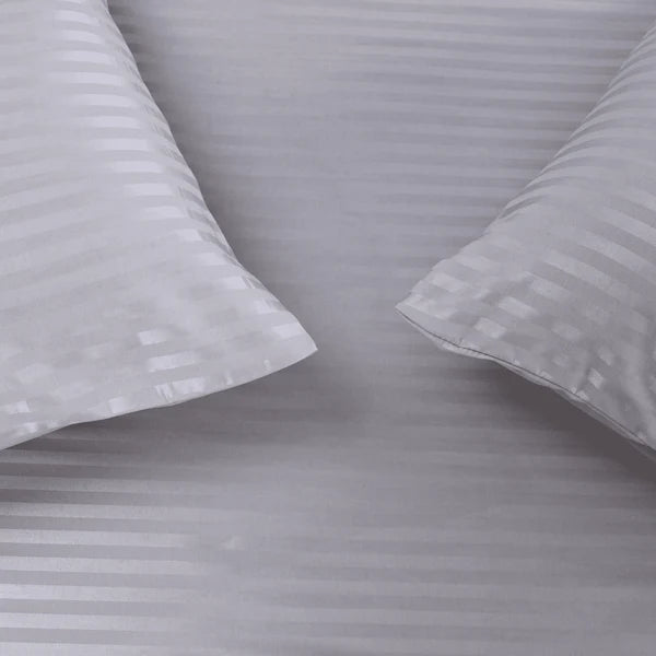 سينزو - طقم ملايات سرير مسطحة رمادية فاتحة، 3 قطع مخططة - 240 × 260 سم