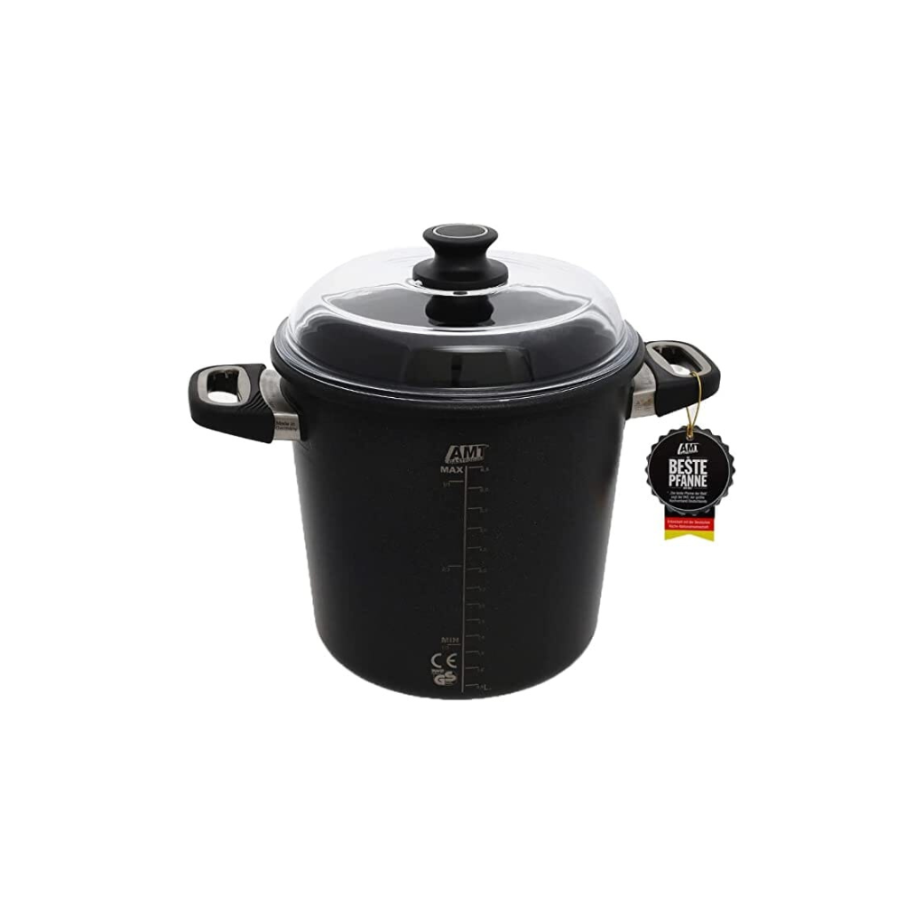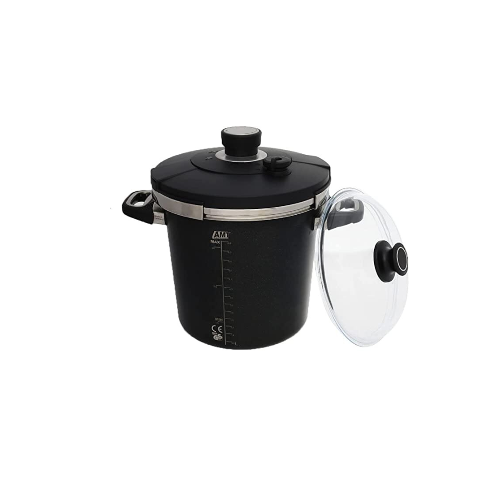 أي إم تي حلة ضغط بمقابض و غطاء زجاج اضافي كاست ألومنيوم 6.5 لتر أسود