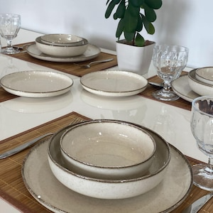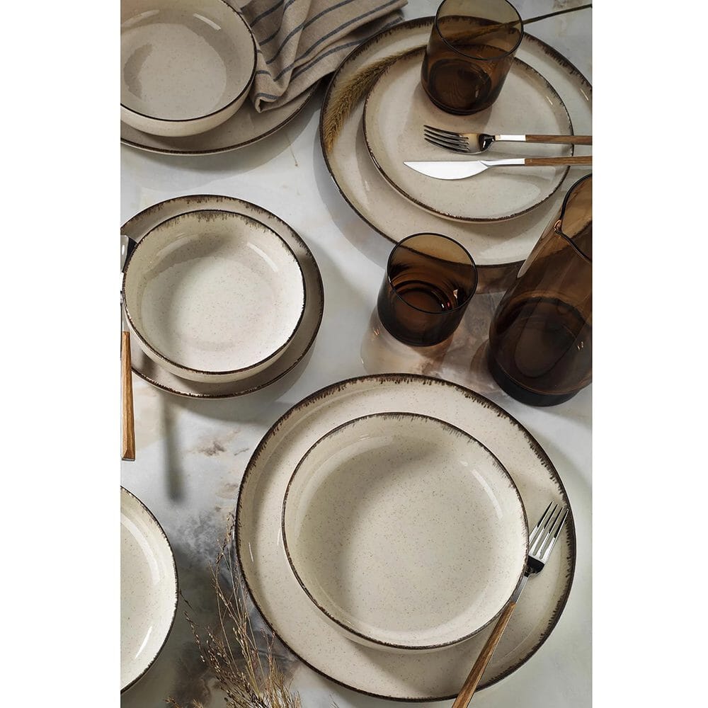 كوتاهيا طقم عشاء بورسلين 24قطعة بيج مع كنار بني