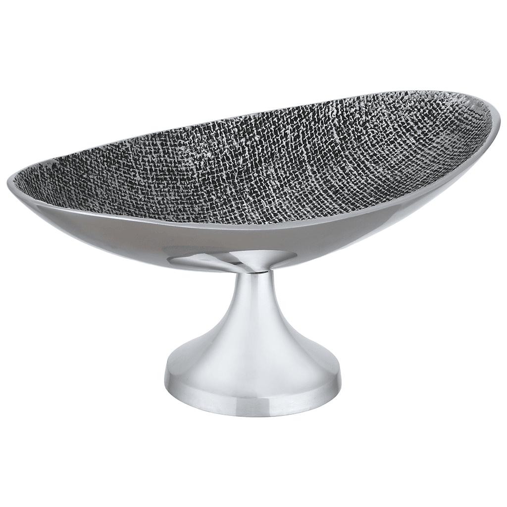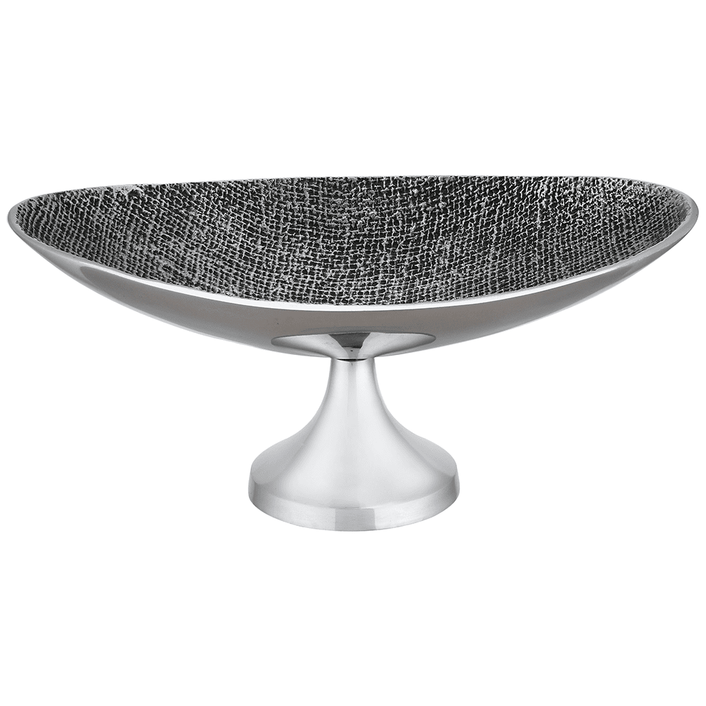 طبق بيضاوي الشكل مع قاعدة لتقديم الوجبات الخفيفة والفواكه - رمادي - معدن مطلي بالفضة