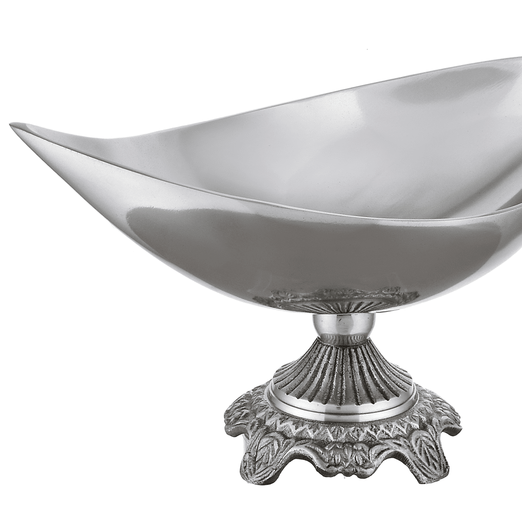 طبق بيضاوي مع قاعدة للوجبات الخفيفة والفواكه معدن مطلي بالفضة