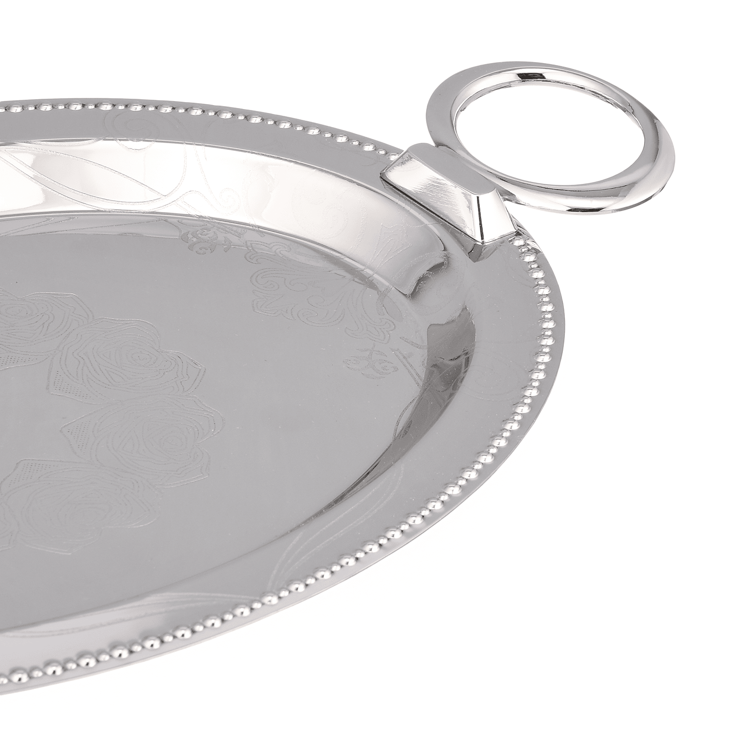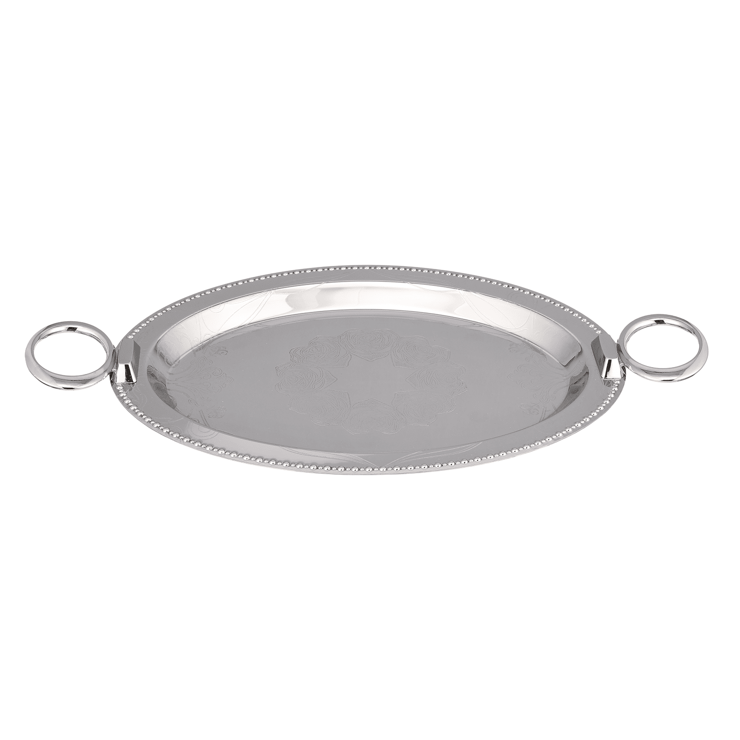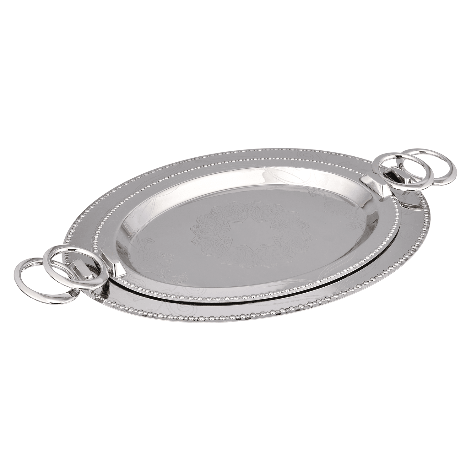 طقم صواني بيضاوي مع مقابض مكون من قطعتين - فضي - ستانلس ستيل